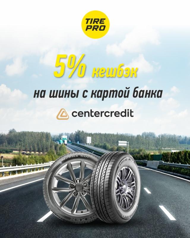 Покупайте шины в шинных центрах Tire Pro и возвращайте 5% от суммы покупки на карту Банка Центр Кредит (BCC).